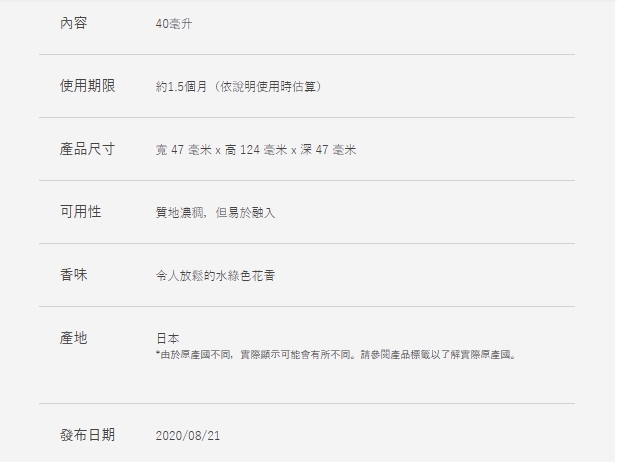 擠出瞬間質地偏粘稠,有一點點拉絲的感覺,但是延展性很好,很好推開,推開也很好吸收,水潤不粘膩。