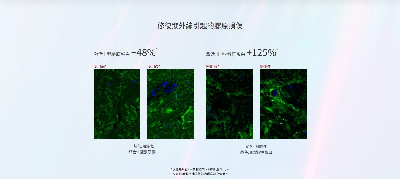 修護因紫外線造成的光老化,使肌膚重返彈潤緊緻