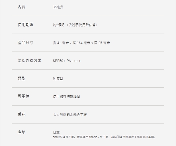 ● 防曬-SPF50、PA++++ 最高規格紫外線防禦效果,防止UV-A、UV-B、穿透型紫外線、守護肌膚抵禦日間傷害。