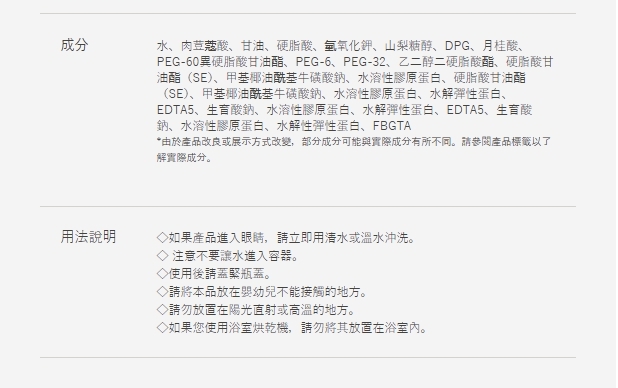 彈性泡棉快速形成,溫和清潔肌膚,同時呵護肌膚。洗完後,你的皮膚會感覺柔軟。