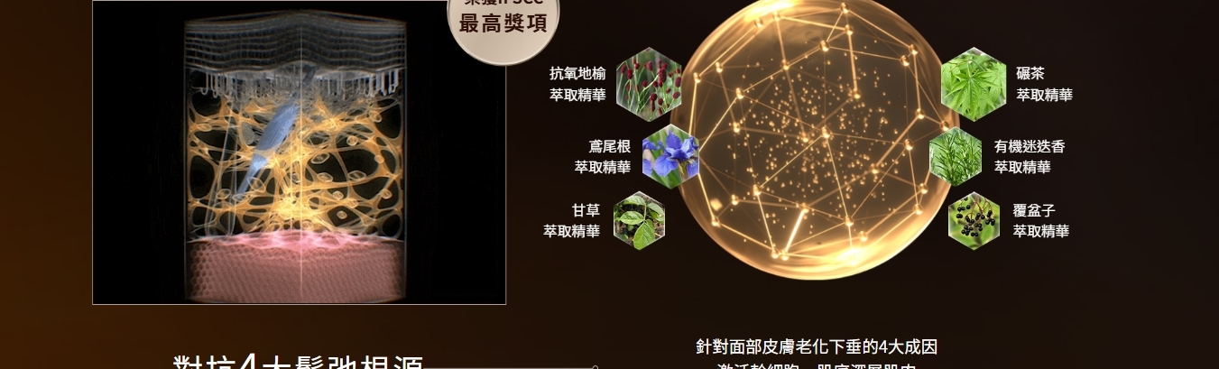 ● V雕塑緊顏精華-榮獲IFSCC 最高獎項,緊塑肌膚四大核心肌肉與肌底
