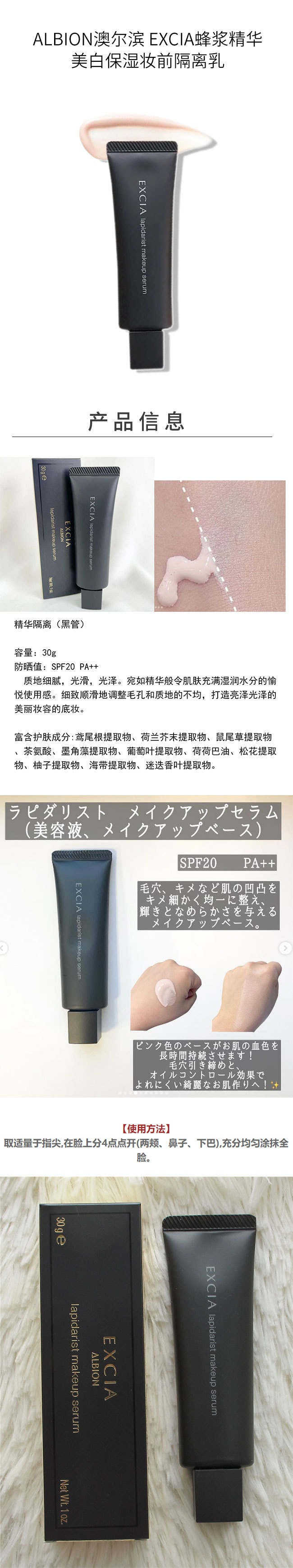 『代購』日本 ALBION EXCIA蜂漿精華黑管保濕妝前隔離乳 30g|SPF20 PA++|日本限定