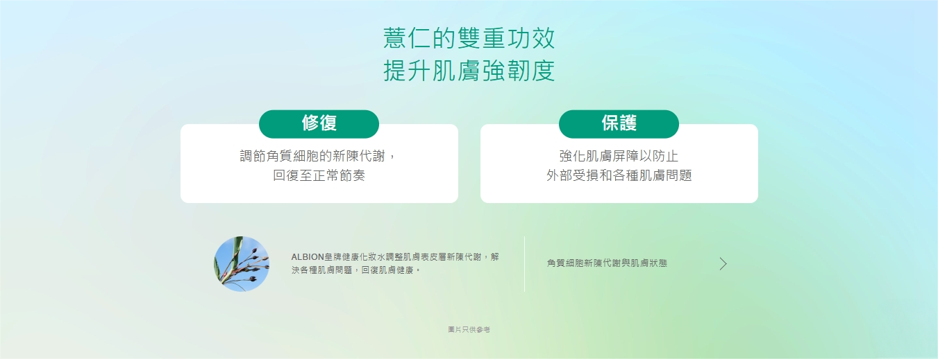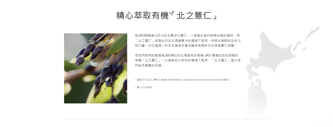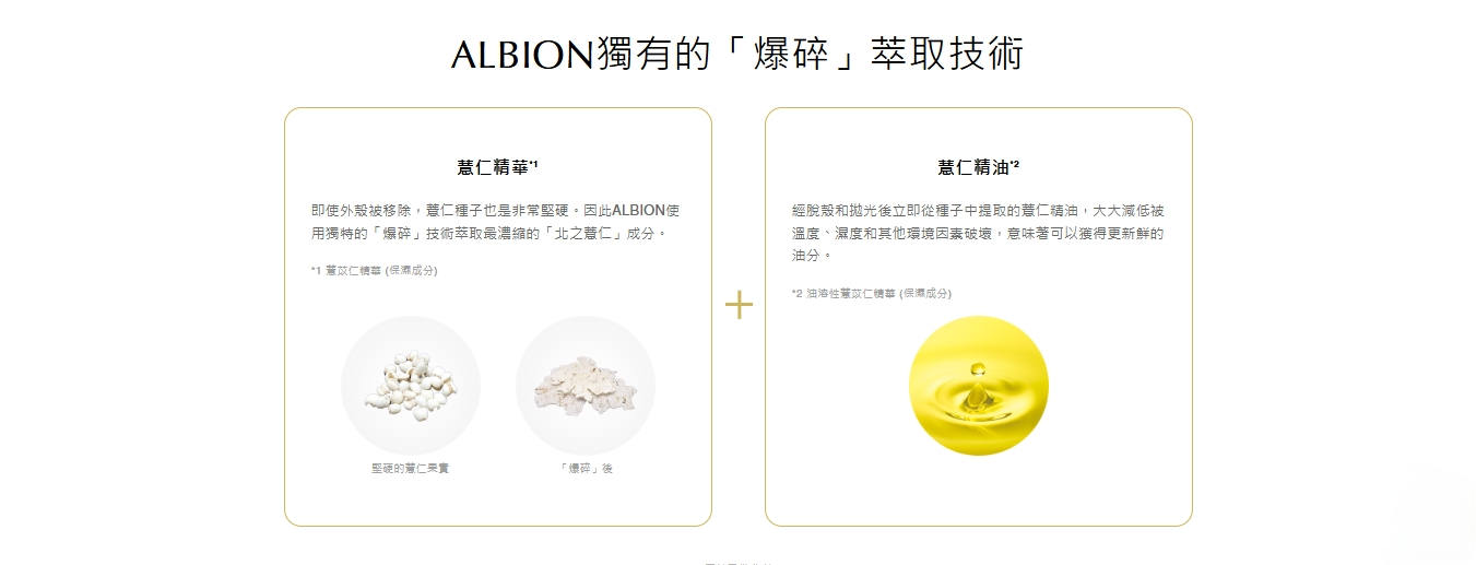 針對狀態不穩定的肌膚,ALBION獨家「北之薏仁」精華有助表皮新陳代謝節奏回復正常、撫平肌理,