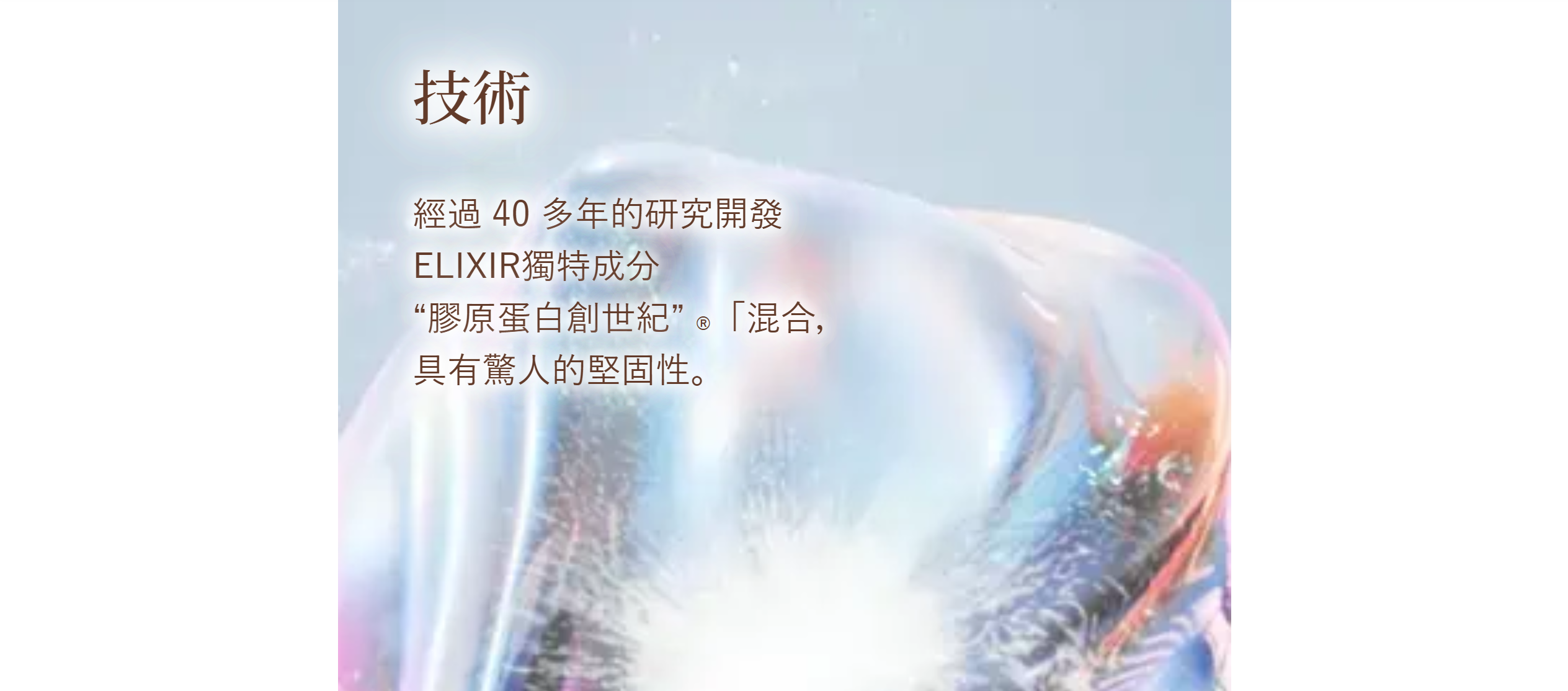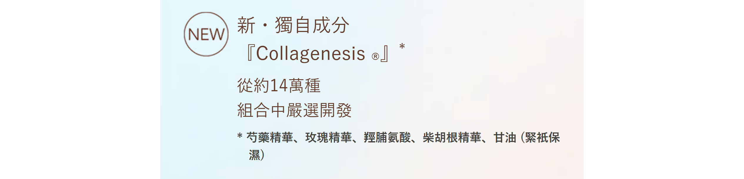 蘊含獨特的「膠原蛋白®」成分,令肌膚緊緻彈潤。