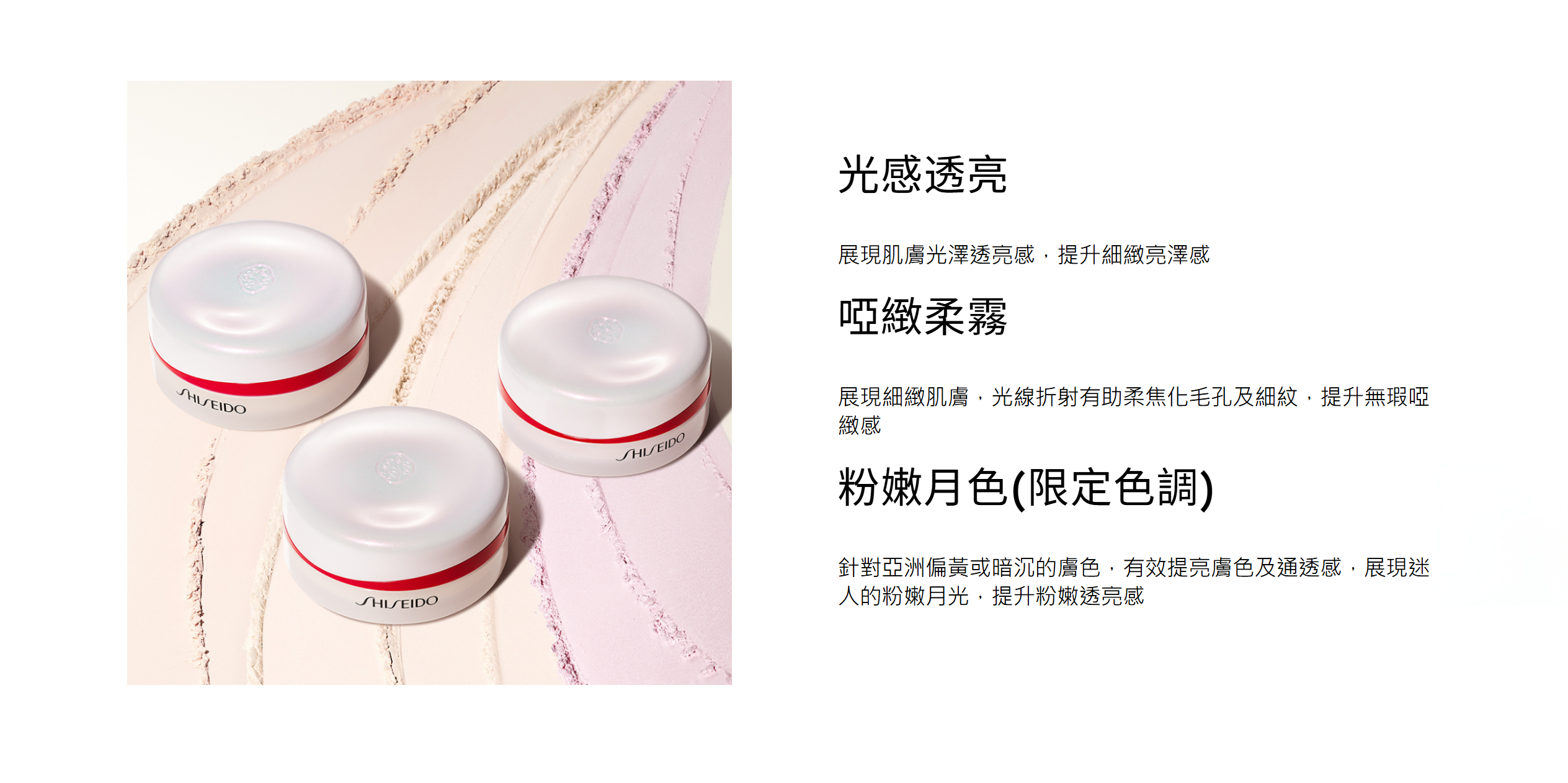 糅合SHISEIDO經典七色蜜粉,讓不同膚色在七色的光學折射下,展現肌膚光澤透亮感。