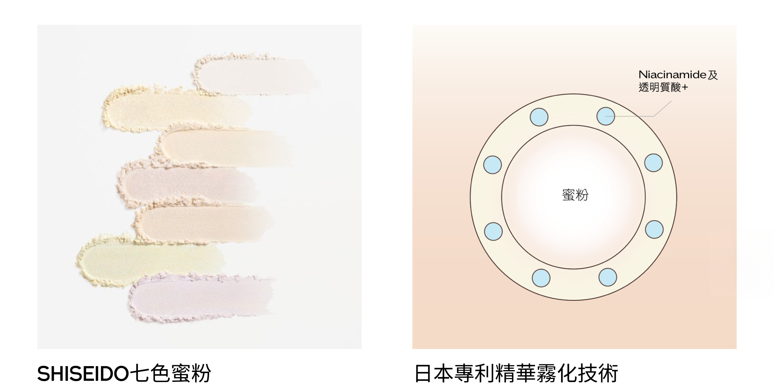 蘊含高效護膚成分,採用日本專利精華霧化技術(Patent Essence Mist Process),將精華融入蜜粉中,