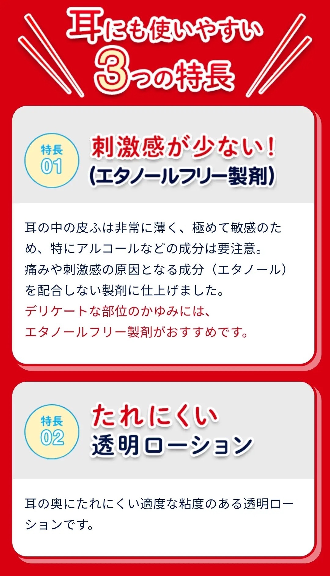 它是一種治療耳朵瘙癢等的藥物,著重於“功效”和“易用性”。