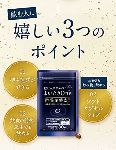 含有2種醋酸菌酵素(酒精脫水成分酵素、甲醛脫水酶)的營養補充品。 推薦給經常喝酒的人群、第二天宿醉的人士。 請以1天1粒為基準,飯前飯後或用餐過程中,與飲料一起享用。 無香料、無上色、不含防腐劑。