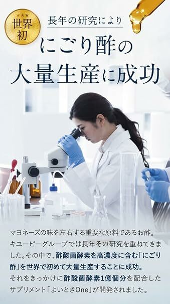 關於醋酸菌酵素:醋酸菌酶,存在自古以來的"中醋",含有酒精脫水酶和甲醛脫水酶。 KewpieGroup 獨自研發的釀造技術,成功將高濃度醋酸菌酵素在世界上首次大量生產。