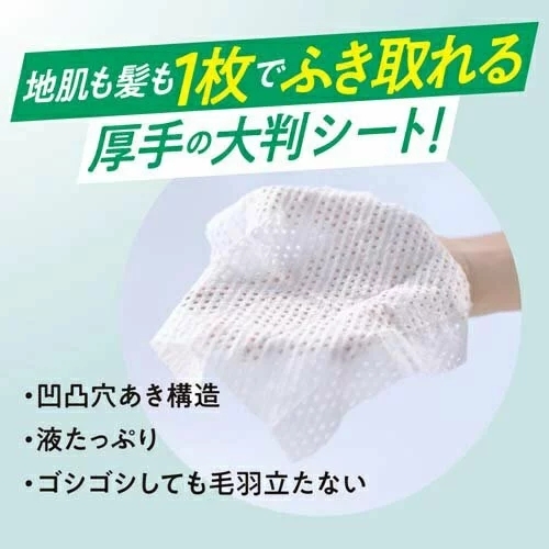 隨時隨地都能輕鬆使用的濕紙巾,只需取一片擦拭頭皮即可回覆清爽