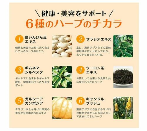 乾燥酵母、甲殼素(含蝦類)、白腰豆提取粉、難消化性澱粉、乳糖、藤黃果提取粉、蠟燭灌木提取粉、