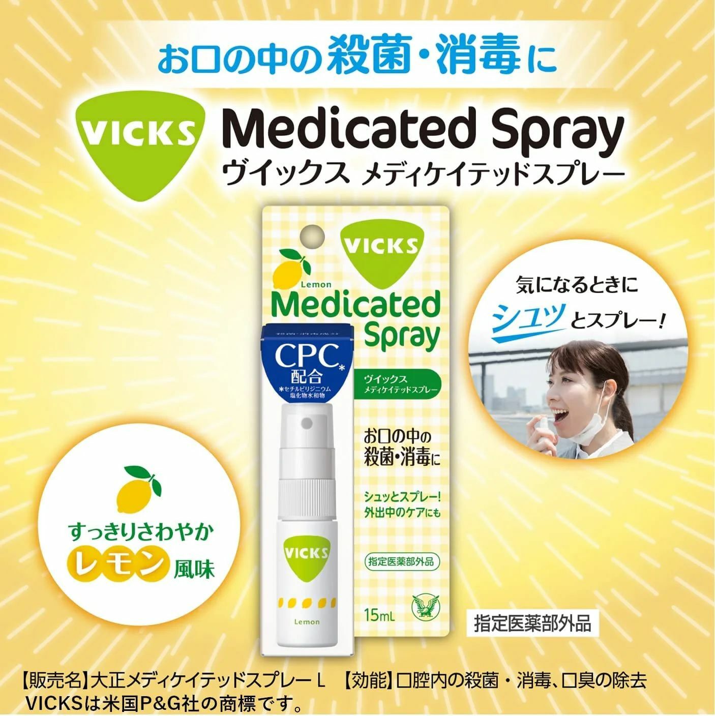 『代購』日本 大正製藥 Vicks 藥用口腔消毒殺菌噴劑 檸檬味|口腔消毒殺菌喉嚨發炎|15ml