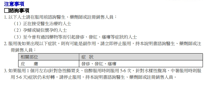 有關添加物:含有日本藥典硬脂酸鎂、日本藥典乳糖水合物