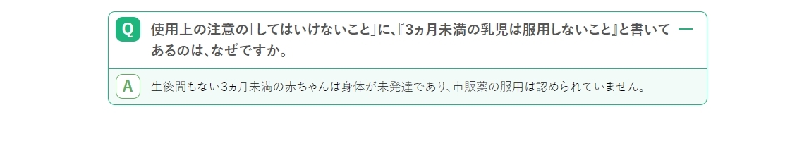 Q:為什麼使用注意事項的「禁止事項」部分寫著「3個月以下嬰兒請勿服用」?