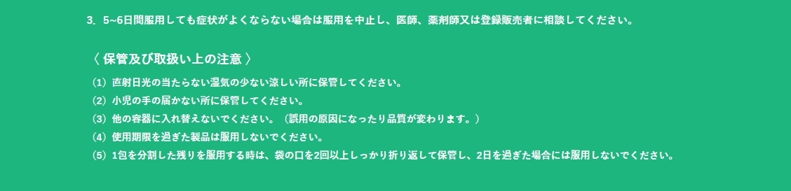 3.服用5~6天後症狀無改善時,請停止服用並諮詢醫生、藥劑師或註冊銷售人員。