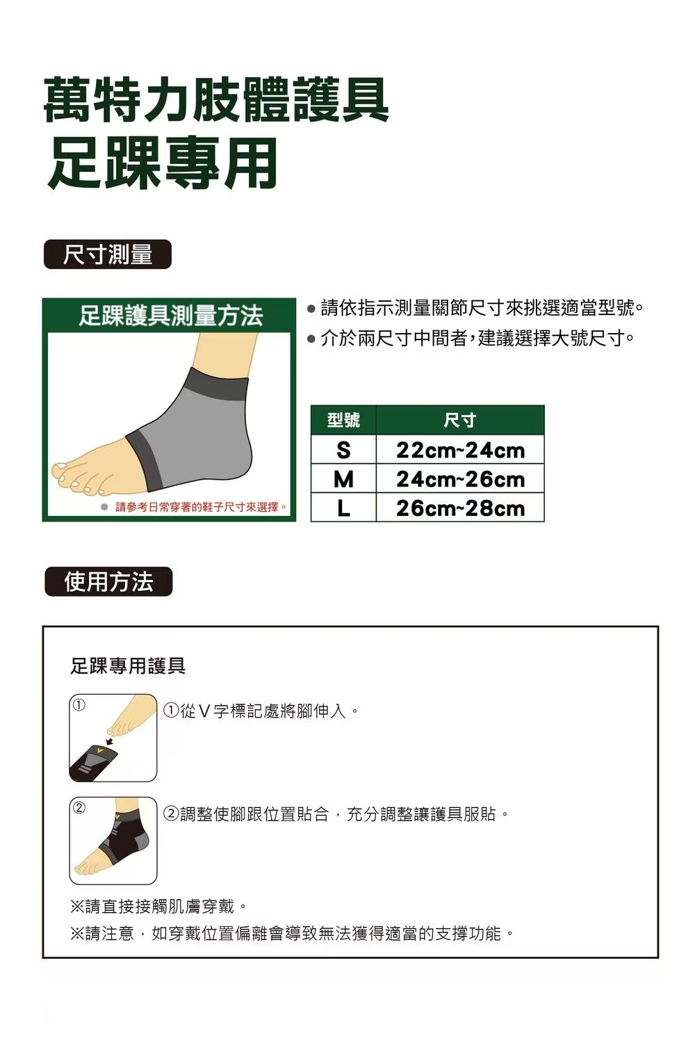 尺寸:S碼足踝周長22〜24cm,M碼足踝周長24〜26cm,L碼足踝周長26〜28cm