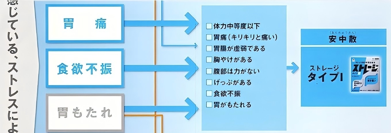 腹瀉/稀便、神經官能性、神經性胃炎、消化不良、胃下垂、胃弱、宿醉、噯氣、胃灼熱、急/慢性胃腸炎、口腔炎