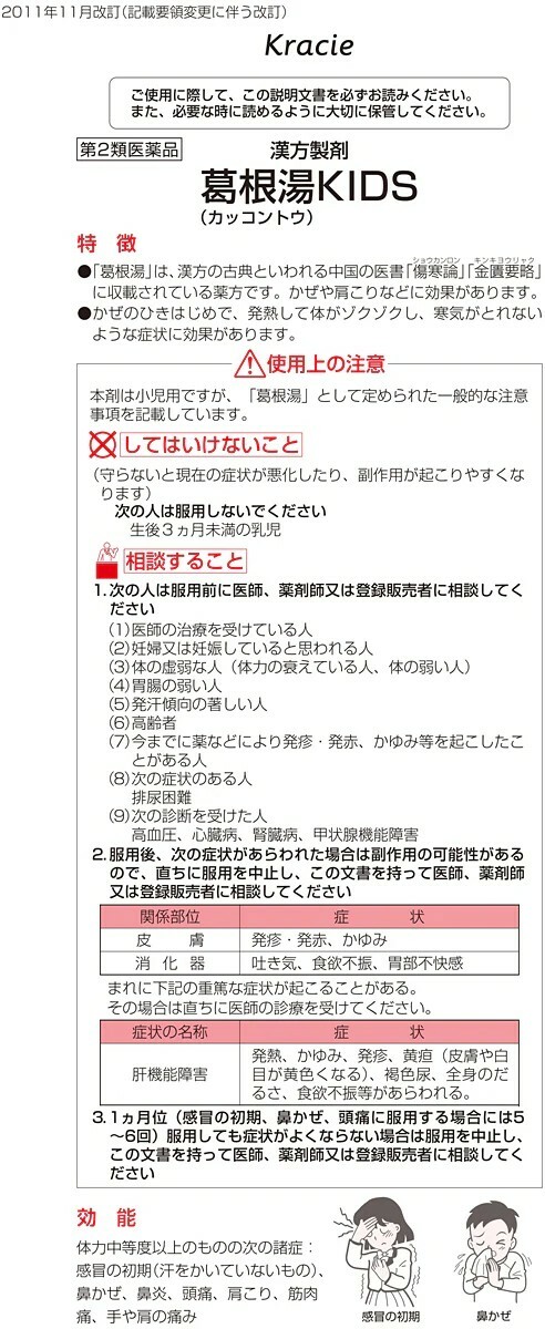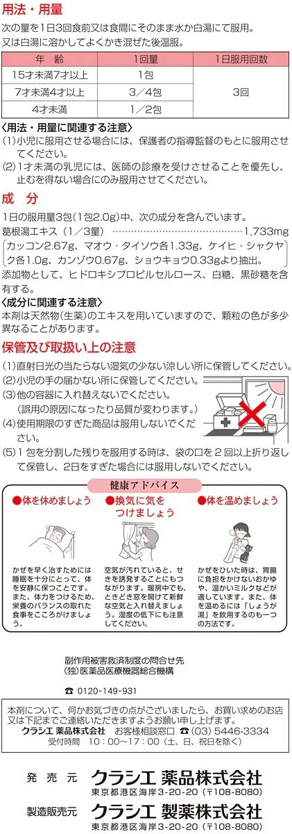 葛根湯提取物(1/3量)(葛根2.67克、麻黃、桂枝、芍藥各1.33克、桂枝、芍藥各1.0克、甘草0.67克、瘦果0.33克提取自。 )......1,733毫克