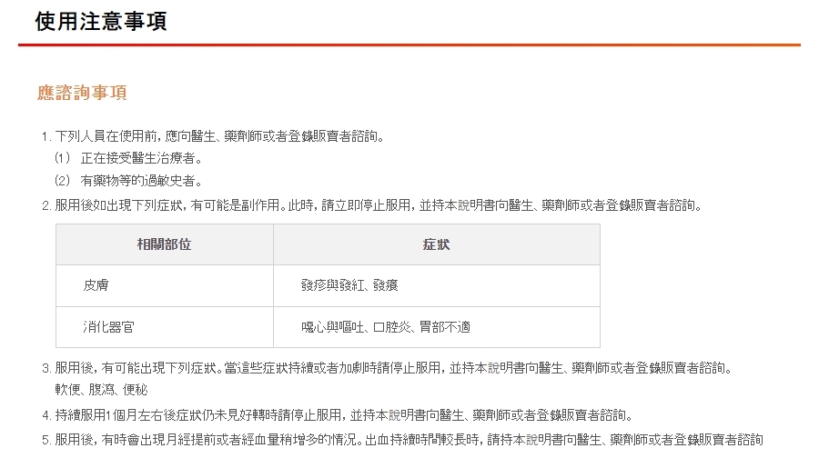 2.如果服藥後出現以下任何症狀,可能會引起副作用,請立即服用。