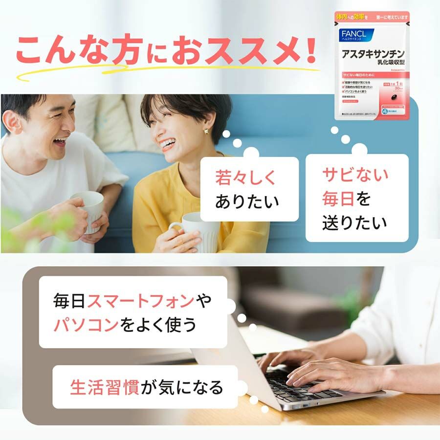 使用FANCL的蝦青素,您每天只需服用一粒即可輕鬆補充。