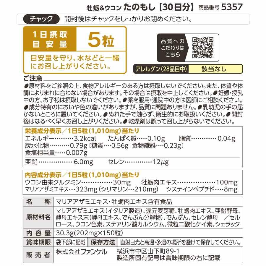 含有六種成分的複雜組合,包括持久且均衡的薑黃素、富含牛磺酸的牡蠣肉提取物以及FANCL的特色成分水飛薊提取物。