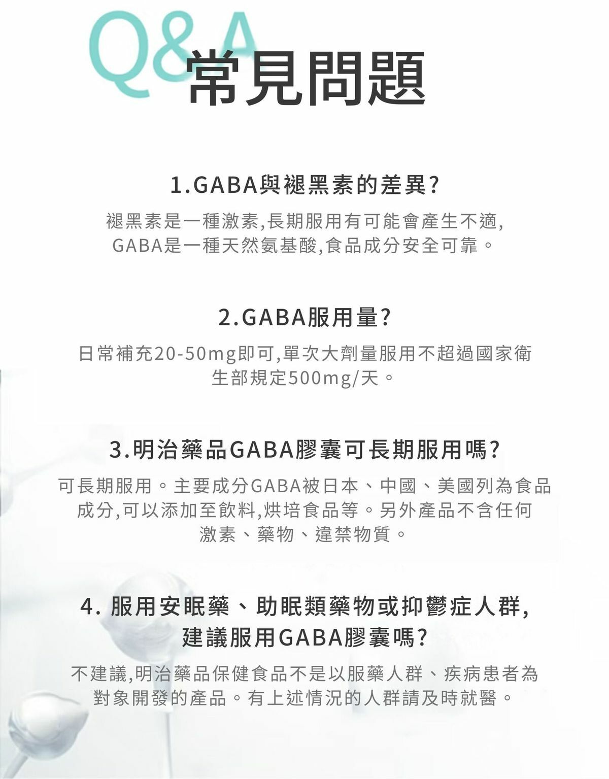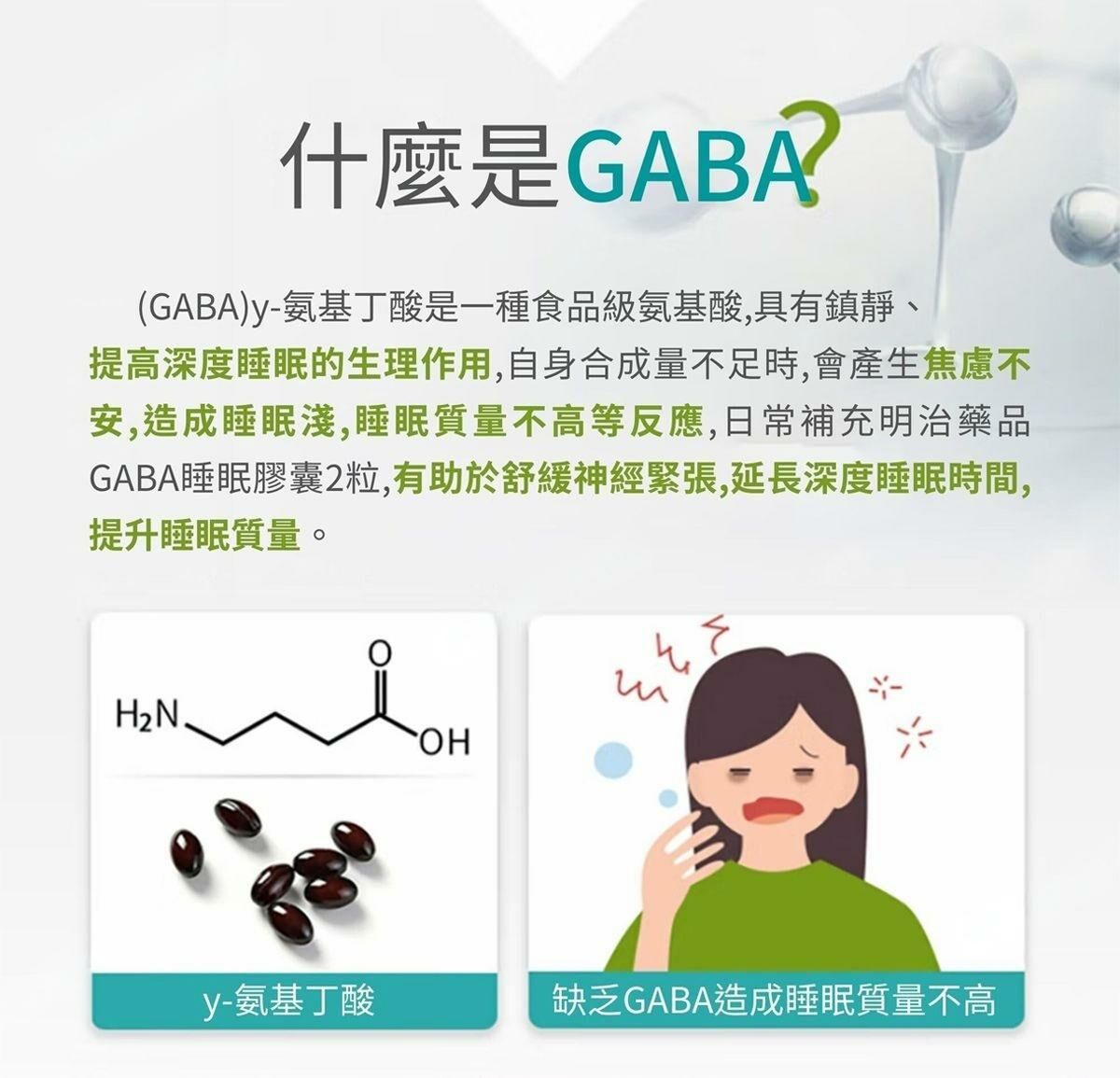 GABA y-氨基丁酸是一種食品級氨基酸,具有鎮靜、提高深度睡眠的生理作用。