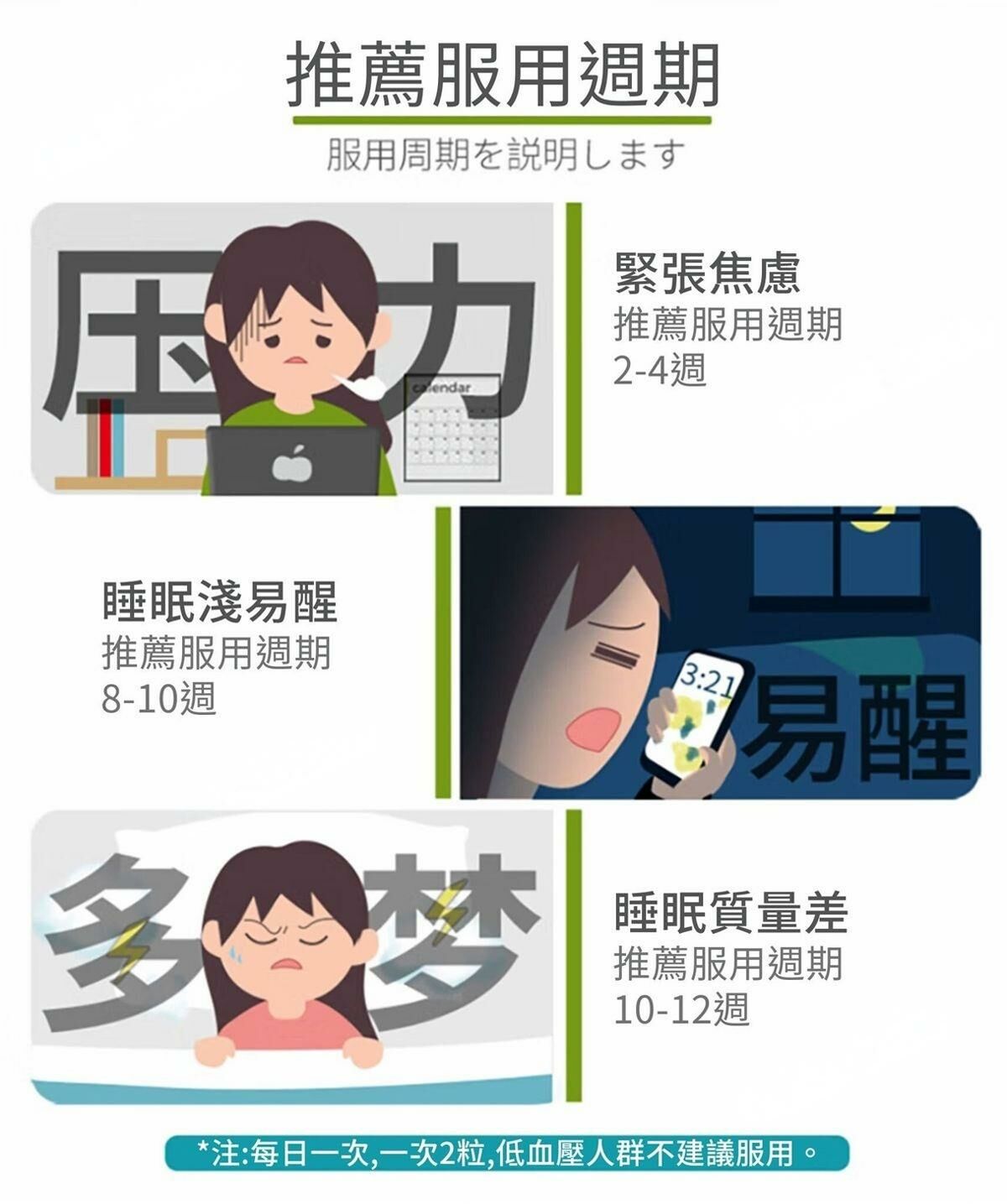 自身合成量不足時,會產生焦慮不安,造成睡眠淺、睡眠品質不高等反應。