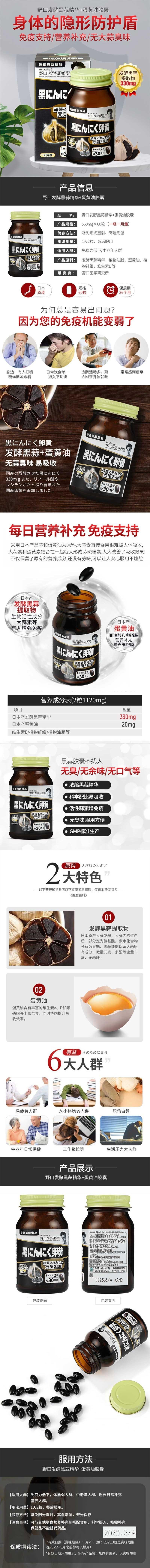 本產品每天服用的2粒膠囊中含有330mg日本產發酵黑蒜,這種成分以其獨特的發酵過程而著稱,能夠有效提升身體耐力並幫助消除疲勞。此外,我們還添加了含有大量亞油酸和卵磷脂的日本產蛋黃,這些成分有助於促進健康,增強身體的整體活力。