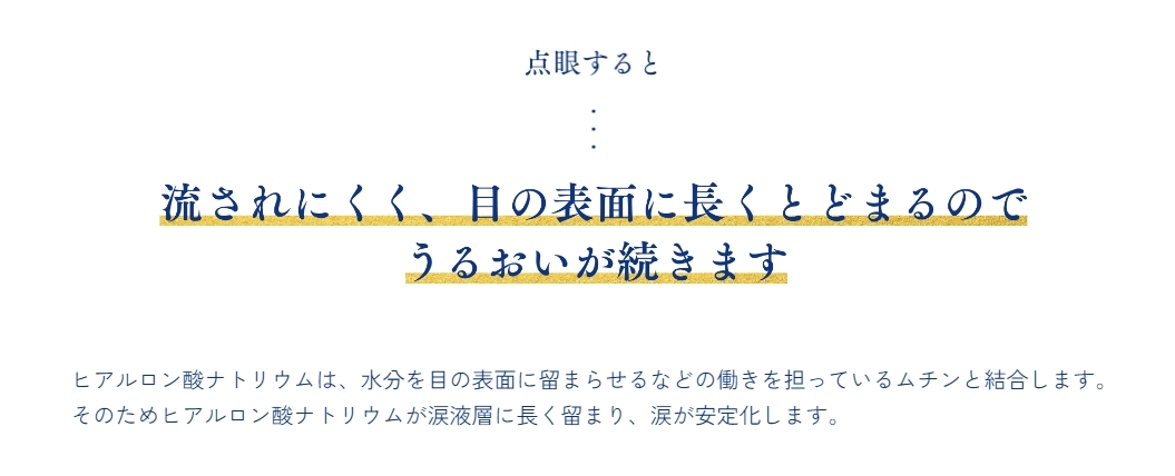 由于眼睛过度使用或眼睛干燥等情况发生,当眼睛表面的泪水层一旦出现凹凸现象,所见的物体会模糊不清,并导致“视疲劳”等不适症状。Hyalein S所含有效成分玻璃酸钠具有高度锁水功能,给眼睛带来滋润,改善“视疲劳”“眼睛干涩”“视力模糊”等不适症状。