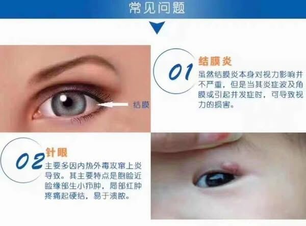 結膜炎(紅眼病)、麥粒腫、瞼緣炎(眼瞼潰瘍)、眼睛發癢