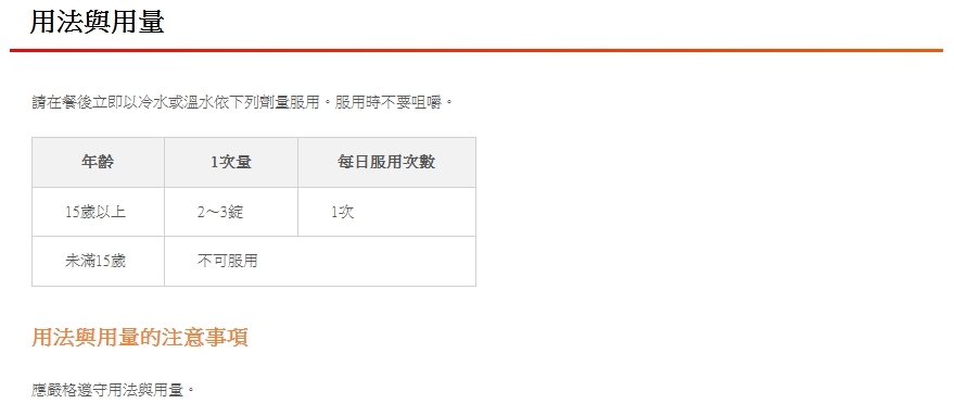 15歲以上:每天2到3片,一次