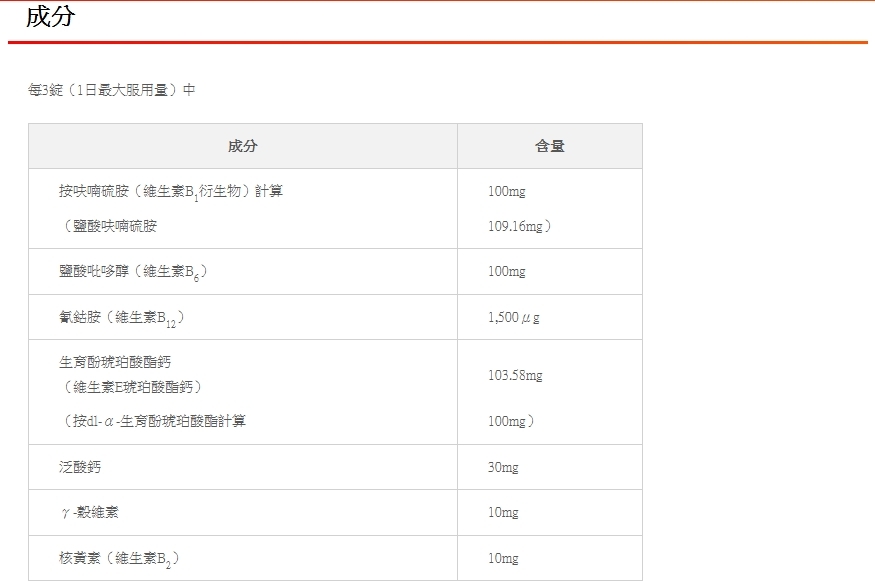 含有參與所有新陳代謝的泛酸鈣,參與身體各個角落的血液循環的維生素E,以及有助於維生素B 1、B 6和B 12的功能的γ-橙花酚。