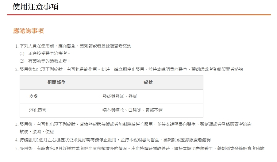 使用注意事項請諮詢