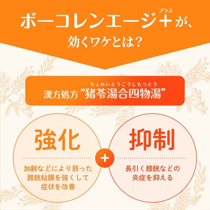 ● 漢方配方「豬苓湯合四物湯」能強化隨著年齡增長而變弱的膀胱黏膜,改善相關症狀。