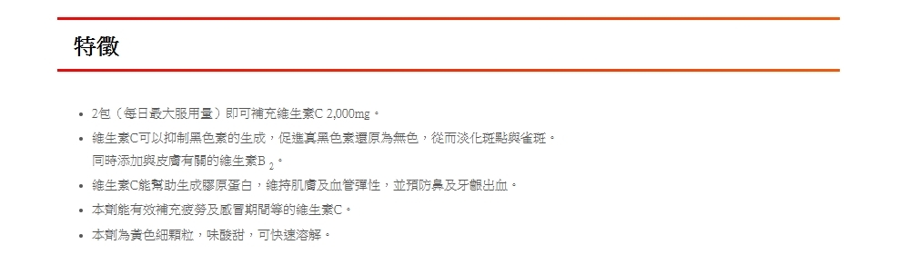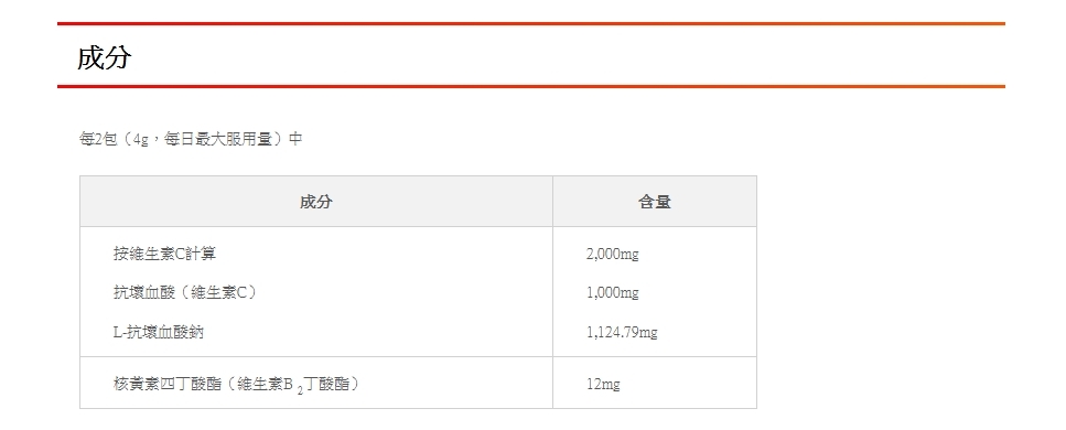 只需兩包(一日最大服用量)即可補充維生素C 2000mg