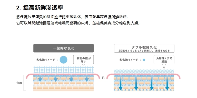 通過雙重微細乳化的高保濕基底,同時具備高保濕力和滲透感。