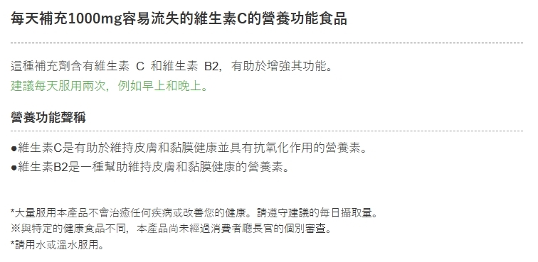 同時添加具有美容功能的維他命B2,是一款能夠創造青春活力及維持健康美麗的美容維他命。