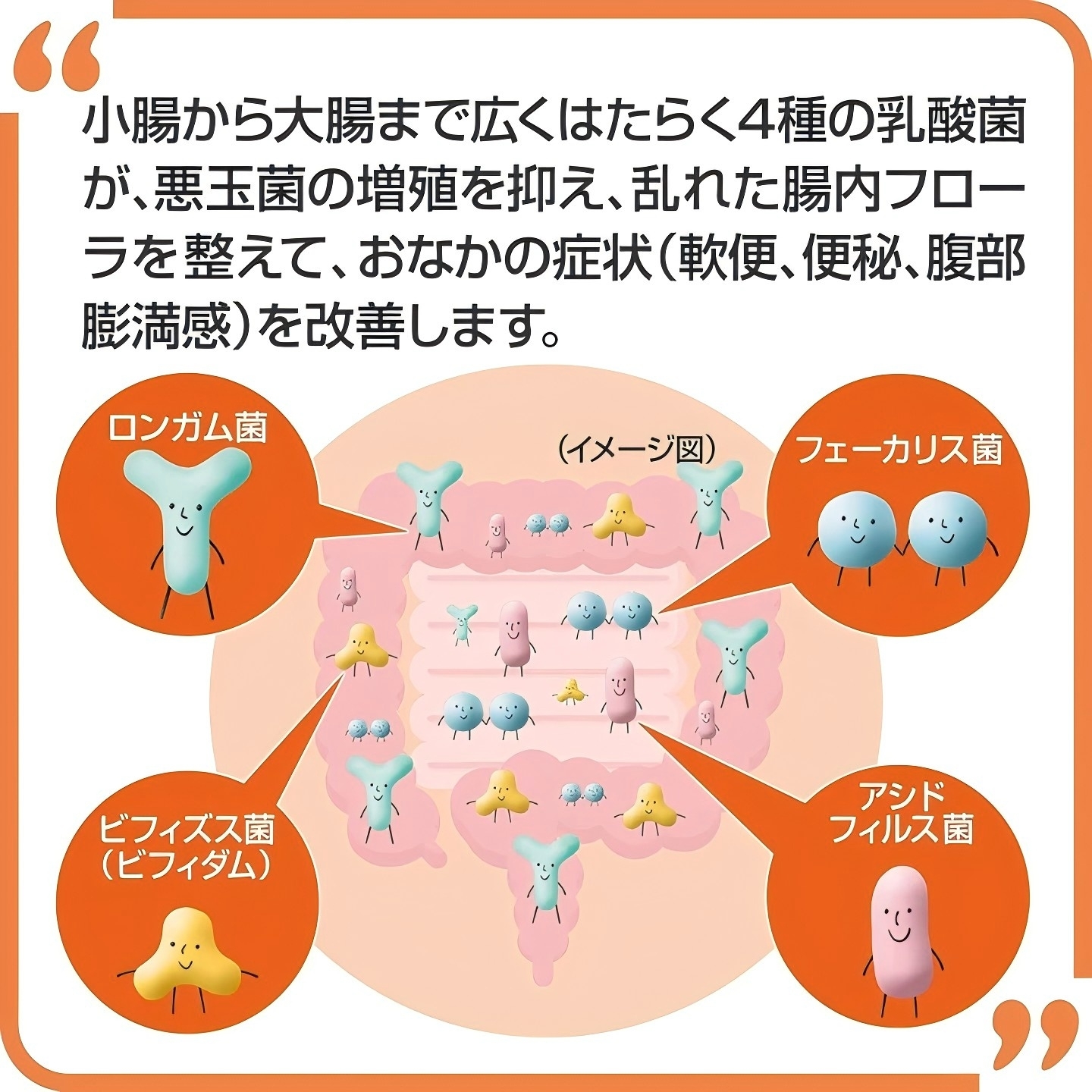 其獨特配方中新增了長型雙歧桿菌(Bifidobacterium longum),與四種乳酸菌共同作用,提供全面的腸道健康支持。