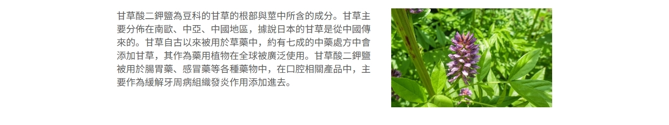 甘草酸二鉀 → 消炎鎮痛,修復敏感牙齦