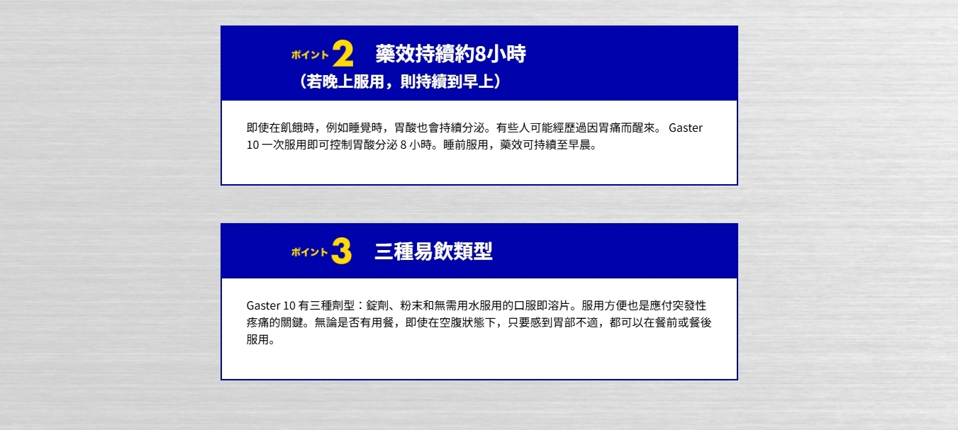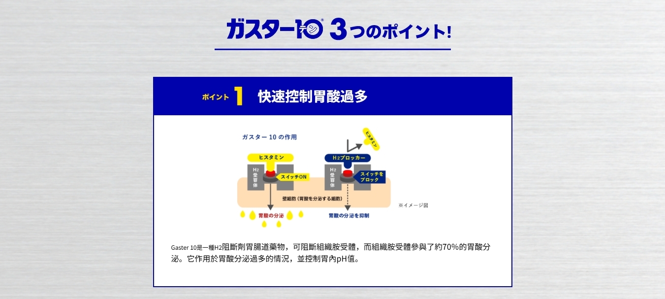 本產品屬於與中和胃酸型胃腸藥不同類型的胃腸藥,對於胃痛、胃脹等症狀有卓越的效果。
