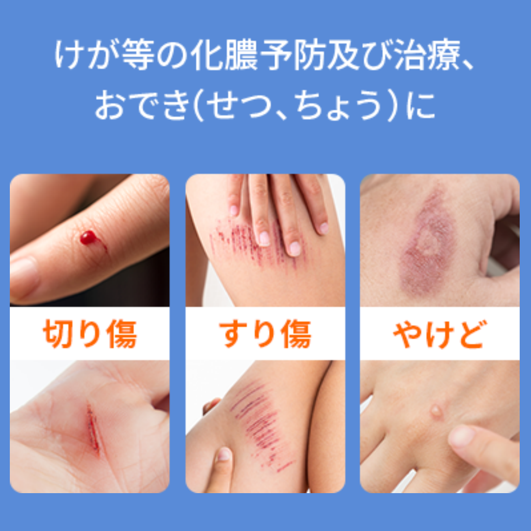 預防及治療外傷、燒傷化膿、膿皰瘡、癤、癰、毛囊炎、濕疹、革蘭氏陽性菌,