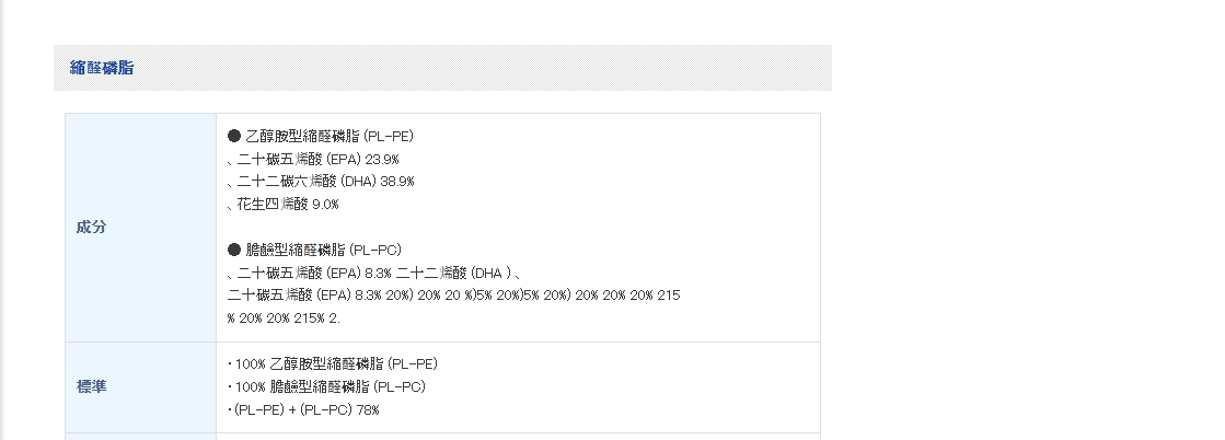 機能性相關成分:扇貝源縮醛磷脂 1.0 mg