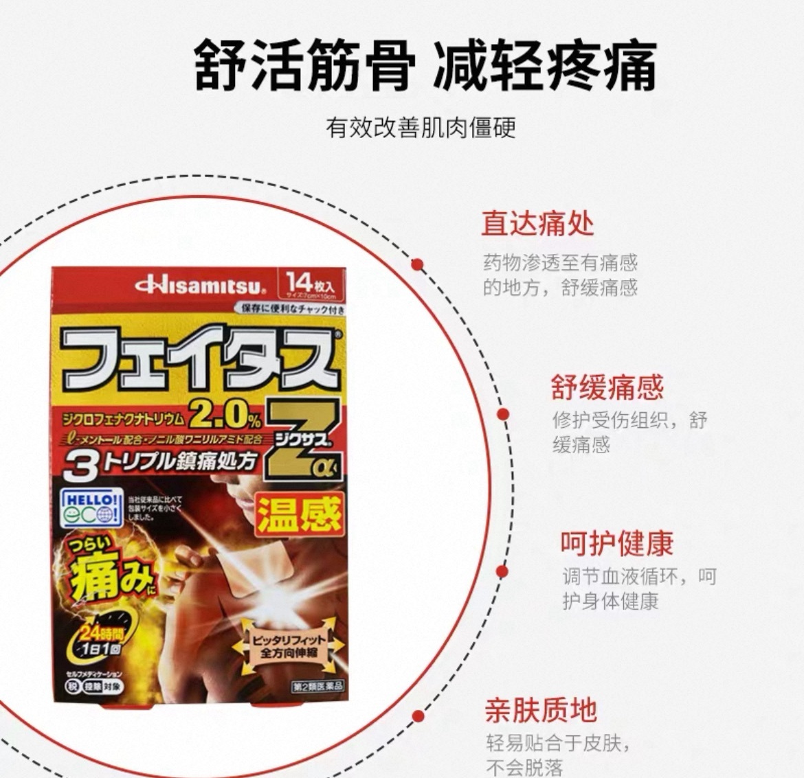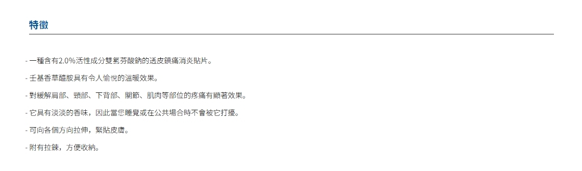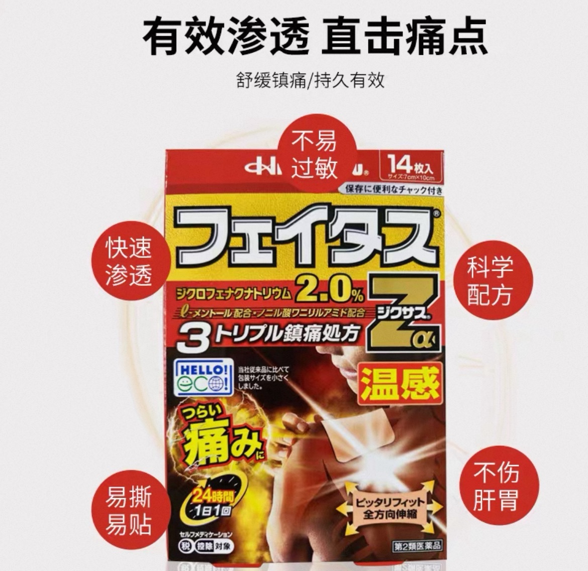 ●以2.0%雙氯芬酸鈉為有效成分的透皮鎮痛消炎貼。