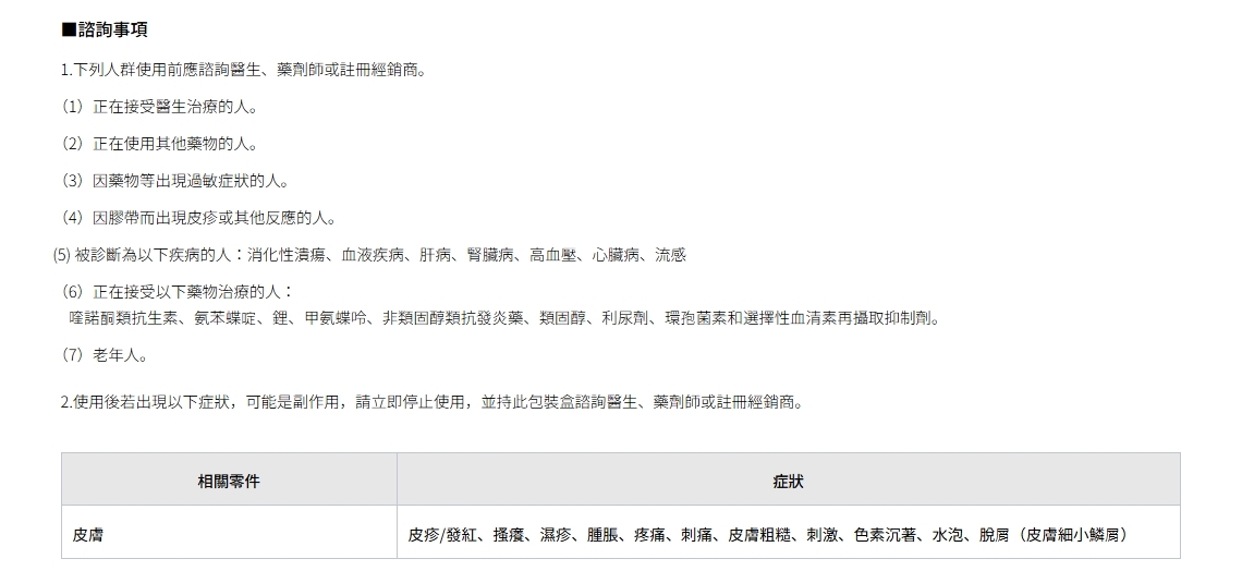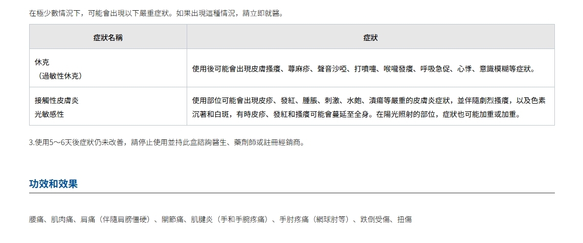 2. 如果使用後出現以下症狀,可能是副作用,請立即使用。