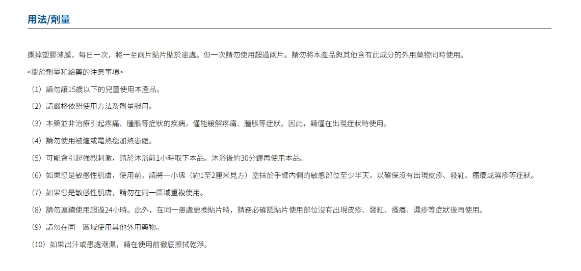 (3) 本藥並非用於治療引起疼痛或腫脹的疾病,而是用於治療疼痛和腫脹。