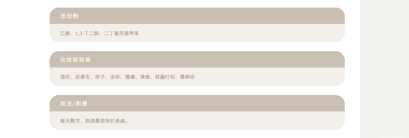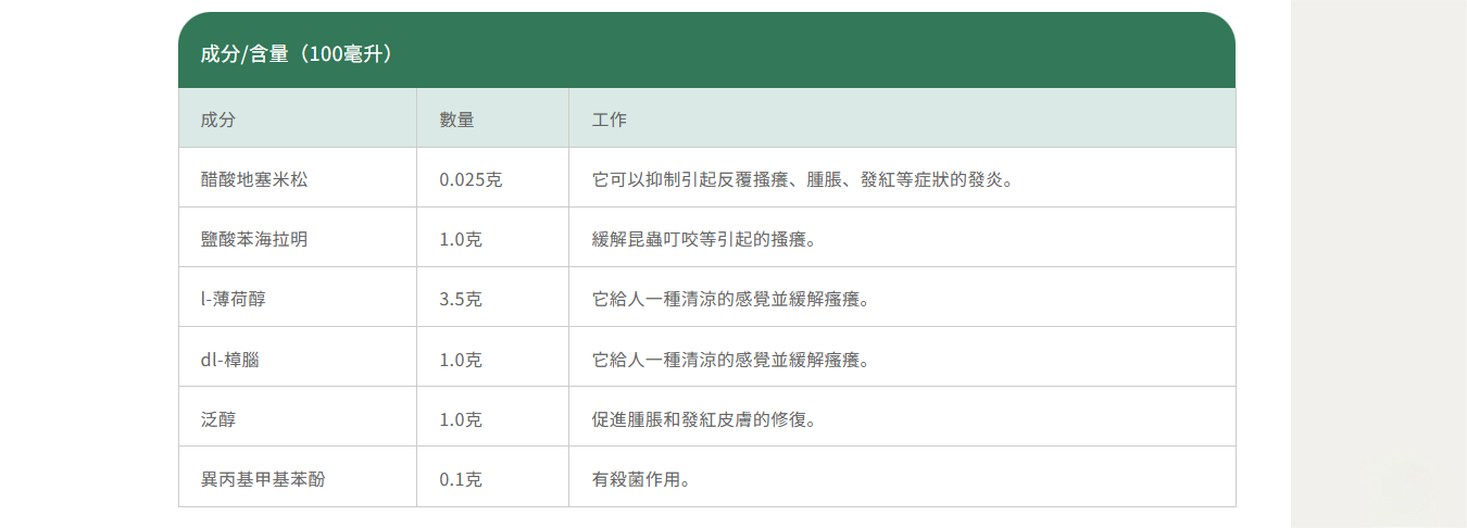 作用:緩解蚊蟲叮咬引起的瘙癢。