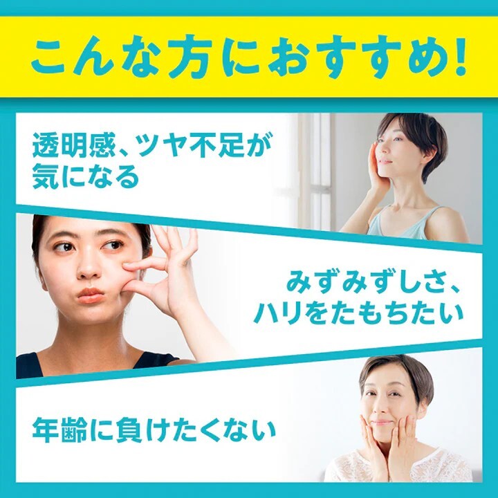 這款補充劑適合希望保持透明感和光澤的人士,有助於維持水潤緊緻的日常生活,並幫助處於變化階段的年齡層維持健康狀態。