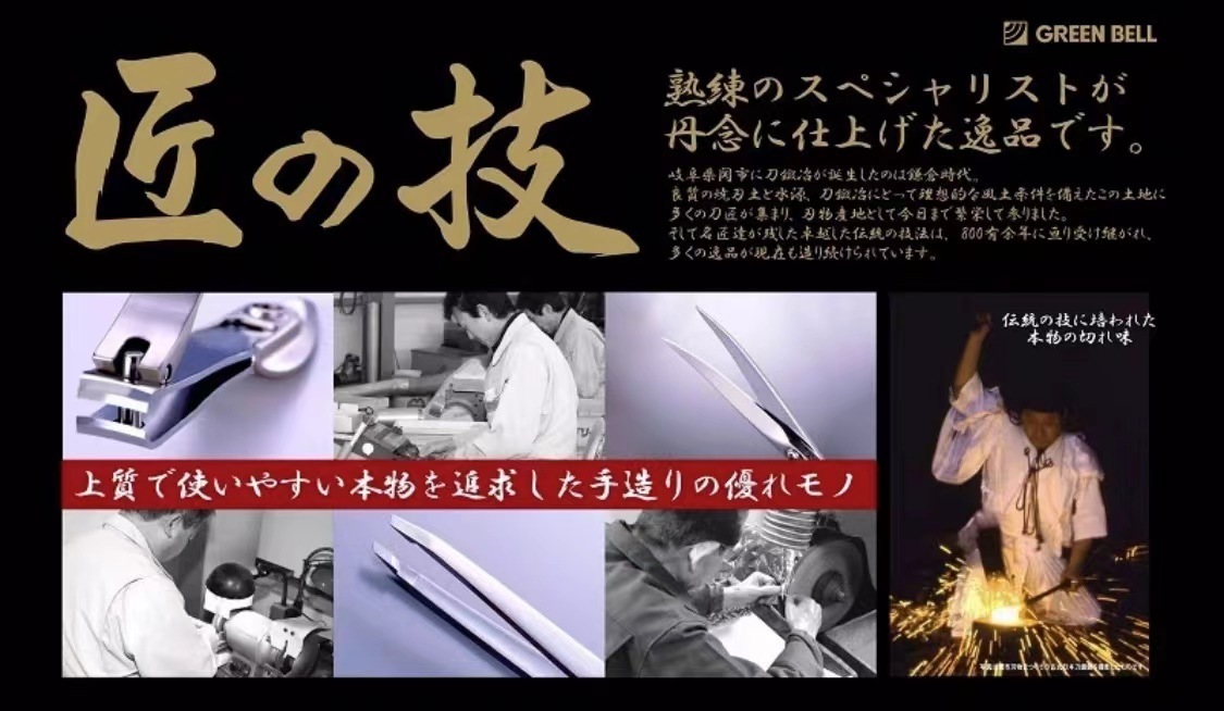 GREEN BELL旗下有許多知名世界品牌如 匠之技/Seki EDGE/PSG/+QQ/Mr.Barber/SE Grooming/BaBy/other等 皆在刀具產地,