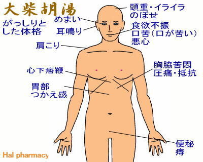 用于身体强壮、从侧腹到胸口有不适、有便秘倾向的人士的以下各种症状:胃炎、习惯性便秘、高血压或肥胖所伴随的肩酸、