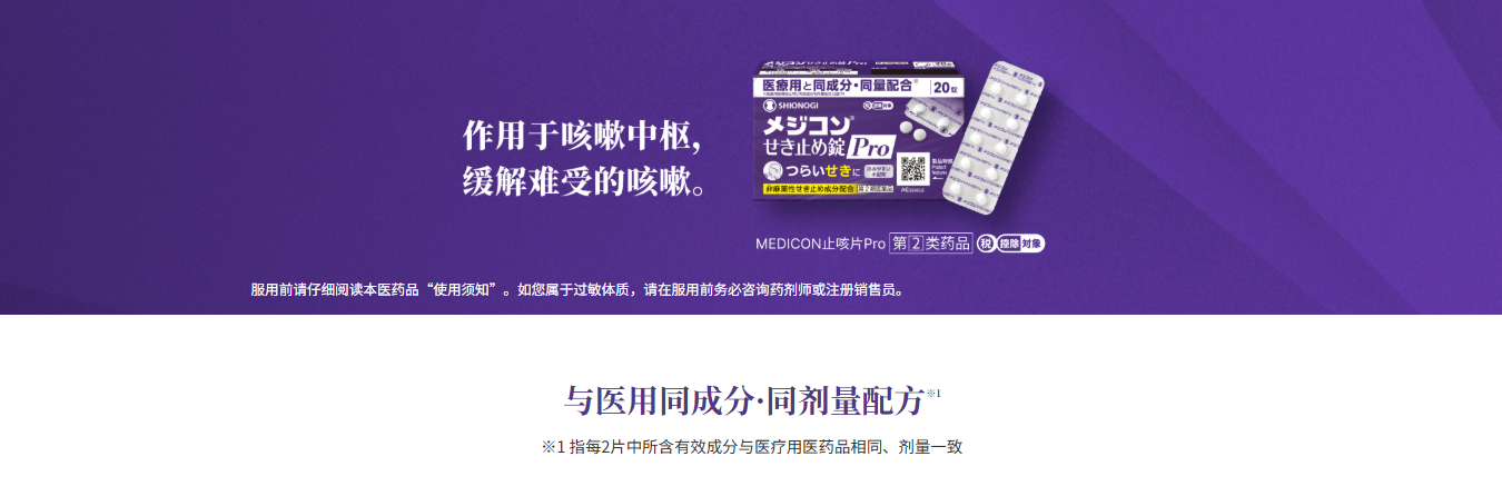 SHIONOGI MEDICON止咳片Pro是一種非麻醉性鎮咳藥,可直接針對咳嗽中樞,迅速緩解持續咳嗽症狀。